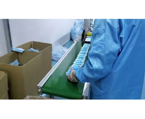 Fabricação de máscaras descartáveis de três camadas;